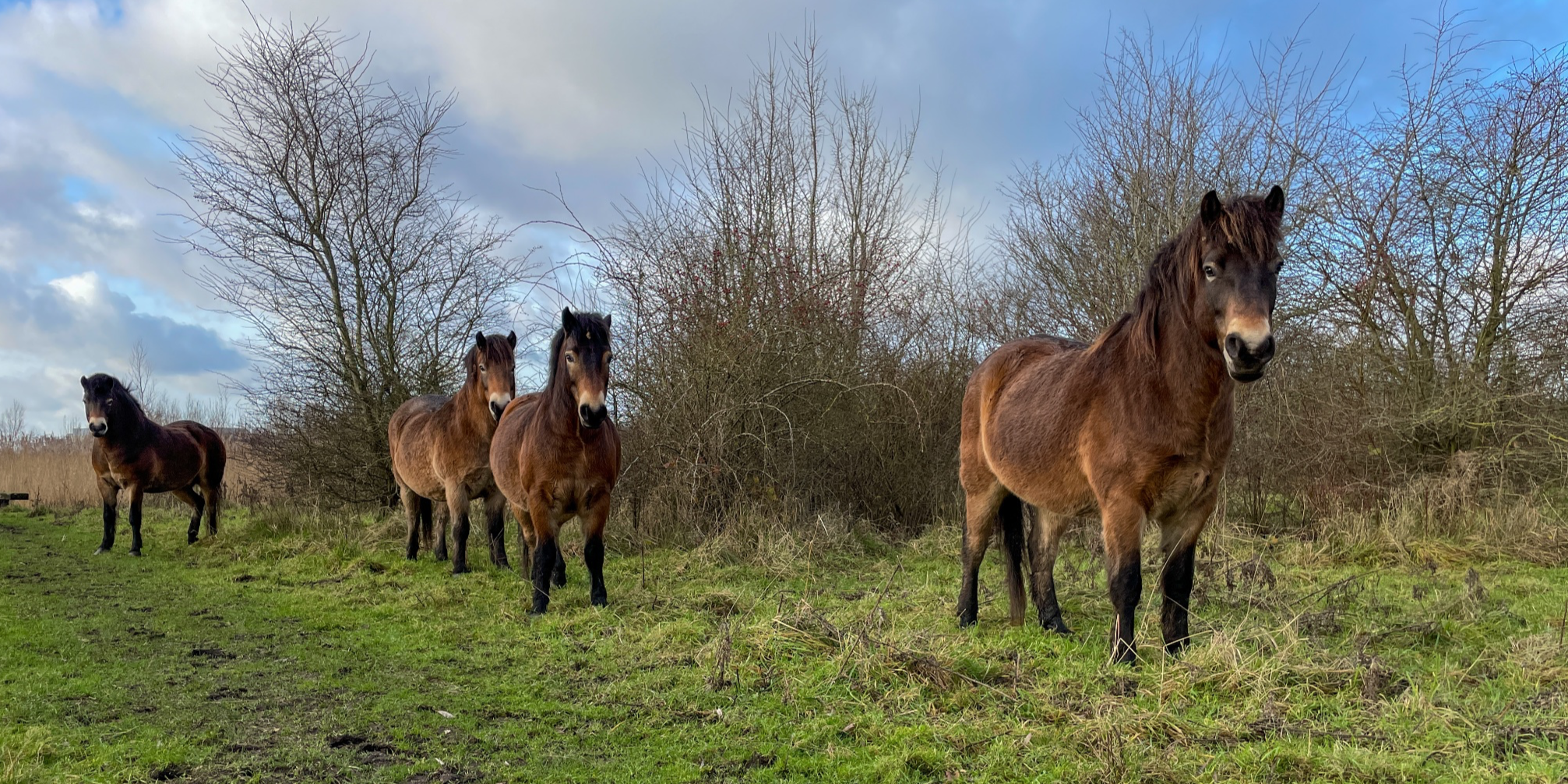 Header: photo of a (boy) band of Exmoor ponies in Amsterdamse Bos